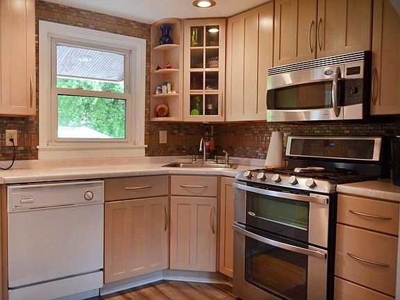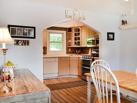Sweet, solid brick and recently renovated home that is move-in ready. New grey hardwood floors throughout, beautiful open floor plan kitchen with stainless steel appliances, including a double oven. Newer windows, furnace and Air Conditioning. Tile bathroom with jet tub. Large bedrooms and good closets. Extra large detached one car garage and fenced backyard that is perfect to contain dogs or kids. Large covered back deck and lush landscaping is the perfect place to spend your summer evenings.