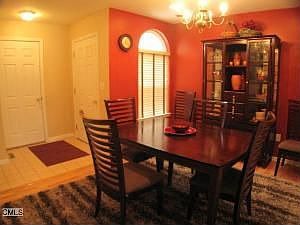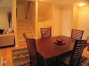 Desirable townhouse at Lexington Meadows! This is the largest unit style with over 2500 square feet of living space. The main level has a galley kitchen with stainless steel appliances, corian counters, hardwood floors and a breakfast nook that overlooks the private back meadow. Living room has hardwood floors and sliders to back deck. Half bath and dining room, as well as 2 car main level garage. The upper level boasts a master suite with French doors, walk-in closet and large master bath with double sink vanity. Second bedroom AND den that could be used as a third bedroom. The lower level has wonderful entertaining space with a gas fireplace and sliders to the back patio. Well maintained complex with a pool and clubhouse!