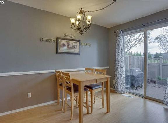 Gorgeous end-unit Newberg townhouse! Wonderful, open floor plan. Living room, with gas fireplace, is open to the kitchen and dining room. High ceilings throughout main level. Large kitchen with island and eat-at-bar. New bamboo flooring on main level. New carpet on upper level. Master suite with walk-in closet and full bathroom. Picture perfect fenced backyard with patio, grass and raspberries. Air conditioning included!