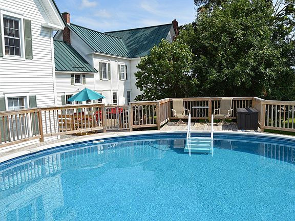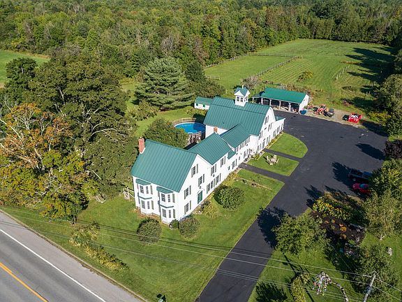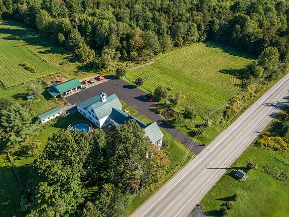 This grand circa 1850 farmhouse sits on 30 acres and has been tastefully refurbished from top to bottom. This home's amenities are many; 5 BR's including an in-law efficiency suite, 2 and a half BA's, automatic backup generator, multiple heat pump units, outdoor wood boiler, sparkling swimming pool, and so much more! There are many period features including built-ins with leaded glass, columns, a stunning oak staircase, plus an eat-in kitchen with antique oak cabinetry. The main floor of the barn has been converted into a beautiful post and beam great-room (current owners call it their 'man cave'). High traffic count on US Route 2, and property is zoned Commercial / Residential / Agricultural so opportunities abound... Retail, B&B, Antique Shop, or bring your horses! Don't miss this one!