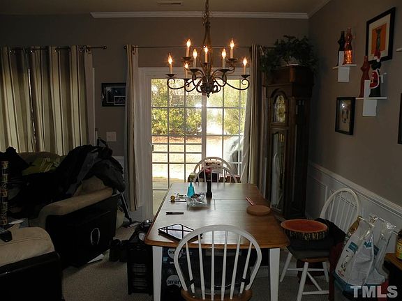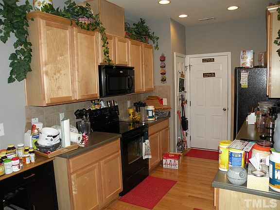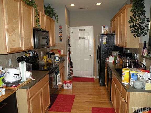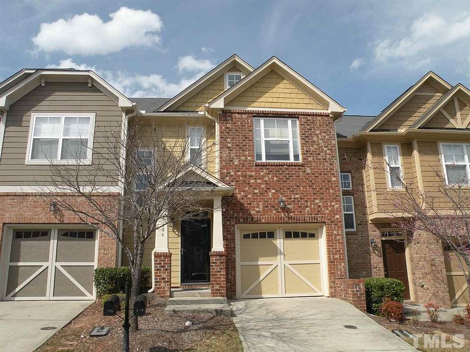 Excellent schools. Spacious 3-BR townhouse with 2.5 baths and 1-car garage. Open floor plan. Laminate for all first floor. Family room with fireplace. Kitchen with spacious cabinets, smooth cooktop, and built-in microwave. Master and 2 large bedrooms upstairs. Backyard with patio. Attached storage unit. Community pool and playground. Very convenient to RTP, RDU, I-540, shopping and parks. Fridge, washer/dryer provided. Please verify schools. Please excuse the crowdedness. Tenant in process of moving out.