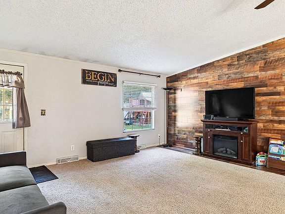 Inside, a welcoming living area with a charming wood-paneled accent wall adds warmth and character to the home. The property has been lovingly cared for by the owners and is ready for new possibilities. With three comfortable bedrooms and two full baths, this home offers ample space for families or guests. The open kitchen includes generous cabinet space and a delightful breakfast nook with a view of the front yard—perfect for starting your day.