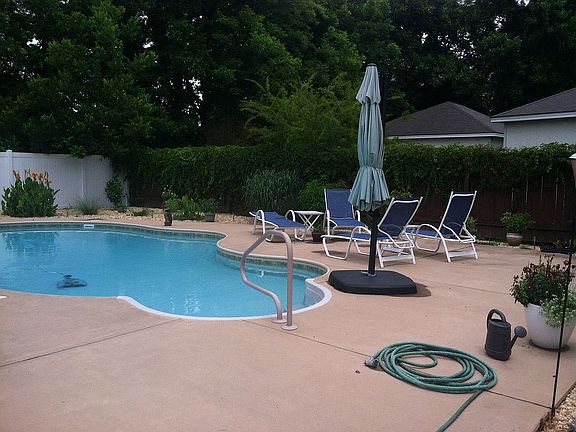 Gorgeous home in Oriental w/ extra lot features a salt-water swimming pool surrounded by exquisite landscaping, spacious concrete patio, privacy fencing & pool house. This 3 bedroom, 2 bath home offers tile flooring in foyer, kitchen & baths, bamboo flooring throughout, all-stainless kitchen appliances with Quartz counter tops, double dishwasher, gas stove, ice maker & whole-house water filtration. Master bath offers tiled shower, claw-foot tub, marble-countered custom vanity. Extensive fenced garden. Wired-in speaker system. New roof shingles and backyard deck 2016! No HOA dues!