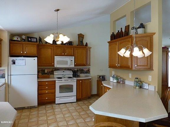 What a gorgeous, immaculate (feels like) home we have, here, with delightful northwestern views, on the outskirts of town! Open floor plan, cathedral ceiling, sky lights, Andersen windows, beautiful Merillat oak kitchen cabinetry, oak doors/trim work throughout, Master Bath contains Whirlpool, main floor laundry, sliding door off dining area leads to two tiered deck out back, tandem 4 stall garage provides shop area and in-floor heat, to boot! Lower level is over 57' in length, provides fourth bedroom, "other" room could be media center, man cave, whatever the heart desires; plenty of room for recreational activities! Entertain your guests on every level, inside or out - two outbuildings also included with this gorgeous home. Generator stays. Qualified buyers only, please! No "home sale" contingency offers. Priced to move - motivated seller.