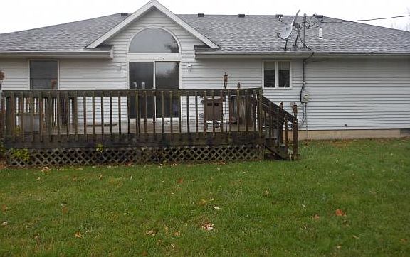 Don't miss your chance to own this newer ranch with basement built by Harold Bushur conveniently located closed to Church, Schools, and Parks. Beautiful open floor plan with vaulted ceilings. Master Bedroom secluded on one side of home and other bedrooms on opposite side of home. Basement is partially finished with another bedroom w/escape window and full bath. Large two car garage, and nice wooden deck off of Dining area. Wood shed in back yard for extra storage.
