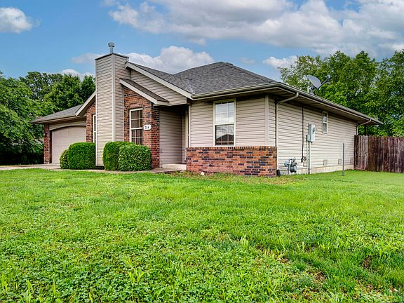 New carpet and a new paint job are making this one stand out in the crowd. The unique floor plan is one you will want to check out. A great flow as you enter this open floor plan that features a large kitchen island with a raised front bar for seating and plenty of storage and counter space to satisfy the chef of the family. The center piece of the living area is the gas fireplace with perfect placement to warm up the entire space and make you feel right at home. The size and location of the primary bedroom will please the head of the household with it being split off from the other bedrooms to give some peace and privacy. The corner lot allows a side entrance to the backyard and the covered back porch is perfect for enjoying those Ozark evenings.