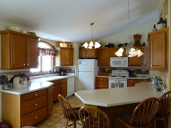 Beautiful open floor plan on main level with cathedral ceiling - beautiful Merrilat kitchen cabinetry, oak trim work throughout. Andersen windows, main floor laundry. 4 stall tandem garage with in-floor heat!