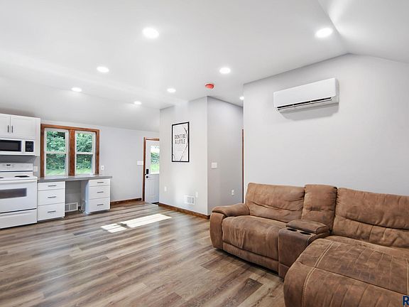 This completely remodeled 2-bed, 2-bath home is a gem on a large, tree-lined lot. Step inside to a modern, open-concept layout featuring a stylish kitchen with concrete countertops, luxury vinyl plank flooring, and vaulted ceilings. The primary suite offers a walk-in tiled shower for a spa-like retreat. Updated windows provide energy efficiency and natural light. The spacious lower level boasts excellent storage. Outside, an oversized 14x24 garage offers ample parking and workspace. Enjoy the expansive lot as-is, or take advantage of the space to build your dream man-cave or additional structure. A perfect blend of comfort, style, and potential!