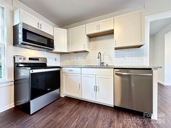 Welcome to 704 N Main Street, Norwood, NC—a wholly refurbished single-family residence that blends modern updates with cozy charm. This 1920 home offers two bedrooms and one bathroom, perfect for a starter home, downsizing, or as an investment property. The house has a NEW ROOF. The kitchen is new with granite, countertops, and new cabinetry; beautifully sanded hardwood floors in the living room and one bedroom. The rest of the home is complemented by durable vinyl flooring throughout. The bathroom is a highlight, with elegant tile flooring, a tiled shower, and a new vanity. Every detail has been considered to offer a stylish yet functional space. Located right next to Norwood City Lake Park, this property grants easy access to a scenic walking trail around the lake, perfect for morning jogs, and weekend strolls.