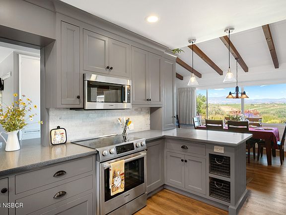 Experience the epitome of California ranch style living on this captivating 9.67-Acre family compound or quality investment. Nestled amidst the serene beauty of the Santa Ynez Valley, this exceptional property is a testament to comfort, versatility, and breathtaking natural surroundings. Offering a multi-generational home, the main house with panoramic views of rolling vineyards and the majestic mountains sits above the second residence, offering abundant space for family and friends or investment opportunities. This estate also offers a zoning designation that opens the door to potential future development with one-acre parcel zoning. Step into a world of quintessential ranch living as you enter the main house, where natural tones complement the beautiful vaulted wood-beamed ceilings designed for both comfort and expansive views. The sprawling main house invites you with a wonderful floor plan, seamlessly integrating the living, dining, and kitchen areas. The remodeled kitchen has stainless steel appliances, gorgeous cabinetry, and views for inspiration, perfect for gourmet cooking and casual gatherings. Walls of large picturesque windows grace the rooms, with brilliant sunlight pouring into the home and enjoying the landscape of lush vineyards and awe-inspiring views. The living room, adorned with a cozy fireplace, provides an inviting space to relax, entertain, and revel in the natural beauty. This main house offers multiple well-appointed bedrooms and bathrooms, including a sumptuous master suite with it's private patio, allowing you to wake up to the splendor of sunrise over the valley. Abundant storage space and modern amenities cater to the needs of a contemporary family. Beyond the main house, a second residence awaits, offering additional living space for family and friends, or the potential for rental income. This versatile dwelling is a charming retreat, equipped with its own kitchen, living area, bedrooms, and bathrooms. It provides the perfect space for extended family visits or as a separate oasis for guests to enjoy. The property opens up endless possibilities for outdoor enjoyment. Wander through the natural landscaped gardens, and take in the views from various vantage points strategically placed throughout the grounds. The vast acreage ensures privacy and tranquility abound. For those with grand visions, this property is a canvas ready for future development. Zoned for one-acre parcels, it presents an enticing opportunity making it ideal for investors or those seeking to customize their dream estate. The heart of Santa Ynez Valley combines luxury, natural beauty, and unlimited potential. From the breathtaking views to the versatile living spaces, this property exemplifies the quintessential California wine country lifestyle. Whether you envision it as a private haven for your family or an investment opportunity, this estate is a once-in-a-lifetime chance to own a piece of paradise.