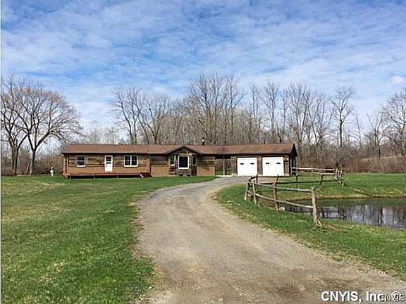 Large ranch home on 1.49 peaceful acres. Spacious living room with wood fireplace & bay window. Master bedroom with double closets and master bathroom. Beautiful cathedral ceilings in the open kitchen, dining area. First floor laundry & ample closet space. Lovely hickory floors. Roof has lifetime shingles. The pine breezeway leads to an over sized 2-car garage. Creek runs near the house into the pond. Nice front deck to relax on and enjoy the quiet country setting!