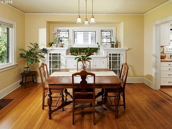 Classic Laurelhurst Bungalow in quiet, coveted location near school. Formal living & dining rooms with beautiful built-ins, refinished oak & fir floors, wood-burning fireplace and many original period fixtures throughout. 2 baths, 3 bedrooms, with 4th non-conforming BR or LR in basement. The 2 car detached garage on 44th St. behind home has street facing ADU potential with more possibilities from separate entrance basement. [Home Energy Score = 1. HES Report at https://rpt.greenbuildingregistry.com/hes/OR10041837]
