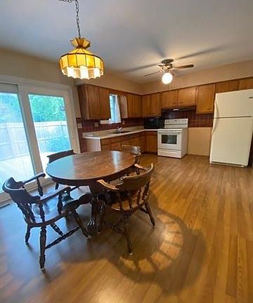 Raised ranch on a large flat lot offers 3 bedrooms and 1.5 baths. Hardwood in bedrooms, hall, and living room. Newer roof, siding, deck. Huge yard, fence and double garage. Quiet neighborhood with trees close to everything! Needs decorative updates. Potential to add shower to primary bath.