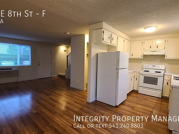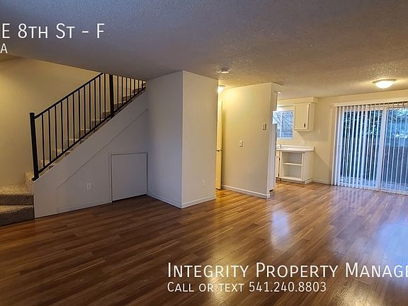 This two story unit has been freshly painted, with two bedrooms upstairs and the living room, kitchen and half bath downstairs. There's a cozy patio off the back, car port and on site co-op laundry. Frequently Asked Questions: STATUS: Available Now PET RESTRICTIONS: No pets. SMOKING: No smoking, no vaping, no marijuana INCOME REQUIREMENT: Gross 3 times monthly rent CREDIT REQUIREMENT: At least 600. MOVE-IN COSTS: First Month Pro-rated, Security Deposit $1825 DEPOSIT TO HOLD: $500 upon approval, holds up to 7 days. APPLICATION INSTRUCTIONS (HOW TO APPLY): Apply online. All complete applications are processed as they are received. First approved applicant to submit $500 deposit gets unit.If applying with a Pet or Assistance Animal, complete profile at http integrity.HOUSING ASSISTANCE: Income must meet 3x the amount of tenant portion, plus utilities. More Information: Property Description Details AREA INFORMATION: Located on 8th Street between 7th and Grants Pass High School FLOORING: Hard flooring, carpet GARAGE/PARKING : Off Street Car Port Parking Available, limit 1 car. KITCHEN APPLIANCES INCLUDED: Fridge, oven/stove LAUNDRY APPLIANCES INCLUDED: Coin Op Laundry Machines Available PROPERTY TYPE: Apartment UTILITIES INCLUDED: Water, Sewer, Trash. Tenant responsible for power. YEAR BUILT: 1972 YARD: None Application, Lease Terms, and Fees *ADDITIONAL FEES NOT INCLUDED IN RENT: APPLICATION FEE: $55 RENTER'S INSURANCE: Required unless exempt by ORS 90.222 APPLICATION TURNAROUND TIME: 2-3 business days LEASE DURATION: Month-to-month HOA Instructions None *All information is deemed reliable but not guaranteed and is subject to change.* All Integrity Property Management residents have the exciting opportunity to enroll in the Resident Benefits Package (RBP)! For just $39.95/month residents can enjoy exclusive benefits including HVAC Quarterly Filter Deliveries, comprehensive renter's insurance coverage, credit building to boost their credit score with timely rent payments, up to $1M in Identity Theft Protection, our top-notch resident rewards program, and much more! Residents can enhance their RBP by adding on-demand pest control for an additional $14/month.