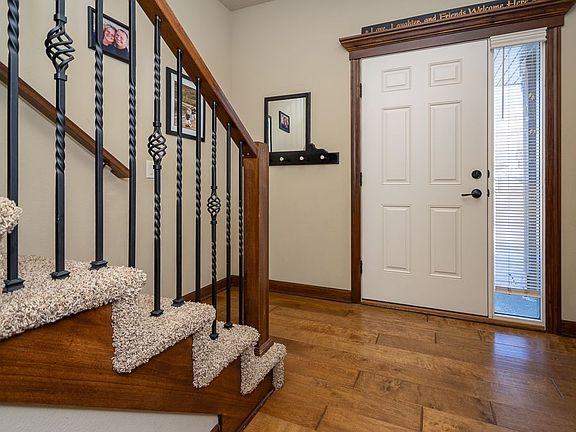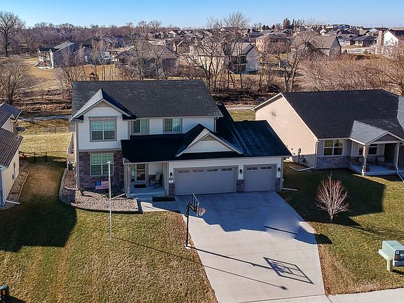 You'll love all the upgrades in this 5-bedroom, 2-story walk-out on the West side of Grimes. Just a half mile to the high school, this home is very convenient to all that Grimes has to offer. You'll greet your friends on a covered front porch and welcome them into the entry foyer where they'll immediately notice the beautiful hardwood floors that run throughout the main living space. In just a few steps they'll discover a wide open area where the living room, casual dining area, and kitchen flow together as one. The main focal point of the living room is a beautiful stone, gas-log fireplace. There's a large bank of windows that bathe the area with natural light. The dining area includes a sliding door to an elevated and covered, treated wood deck. It's the perfect place for grilling and outdoor entertaining. It also provides a fabulous view across the backyard that's enclosed with a vinyl privacy fence. The view extends to a greenbelt area and a paved bike trail that runs adjacent to the property. Back inside, the kitchen is fabulous with granite countertops and a perfectly matched tile backsplash. There's a center island that also serves as a convenient breakfast bar. You'll also appreciate the butler's pantry providing extra serving space and a large food pantry. The stainless kitchen appliances are included. This level also includes the perfect home office, secluded behind French doors. Just off the attached 3-car garage, you'll find a mud room with a built-in drop zone/coat locker and a half bath with a tile floor and a granite vanity top. You'll discover an oversized master bedroom on the upper level. It has a tray ceiling, a large walk-in closet and an en-suite bathroom with tile floors, dual sinks and a step in shower. There are 3 more nice-sized bedrooms on this floor and another full bath with a tub/shower combination. The laundry room is also conveniently located on the upper level. The lower level is semi-finished and provides more great space for entertaining family and friends. There's a large family room with wood laminate flooring and there's a sliding door to a concrete patio. Back inside, there's a finished bedroom and a semi-finished full bath with a step-in shower. With semi-finished basement the approximate total square footage adds on an additional 900 square feet to listing. This is a home that should be on your short list of must-see properties. It's convenient to schools, shopping, restaurants and all that the fast-growing town of Grimes has to offer. This military family needs to make a move. Call today to schedule a showing.