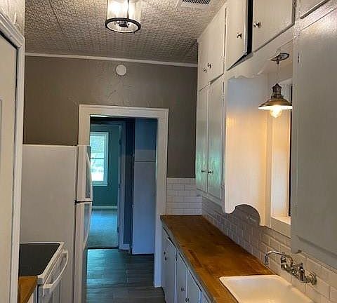 Cute 3-1 in an awesome location! Large living room with fireplace open to dining room. Galley kitchen with Butcher block counter, Refinished cabinets, Antique pressed tin ceiling, high end light fixtures, Updated bathroom with New Vanity floor and fixtures, Complete 2021 HVAC system including ducts and vents and condenser, Updated electrical wiring, plugs and breaker box, Garage is as is, New landscaping a must see!!!!!