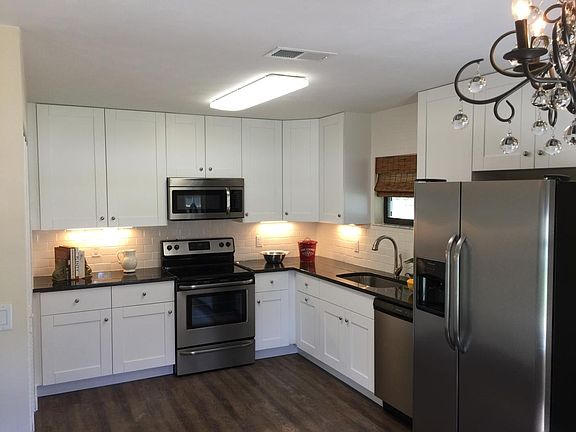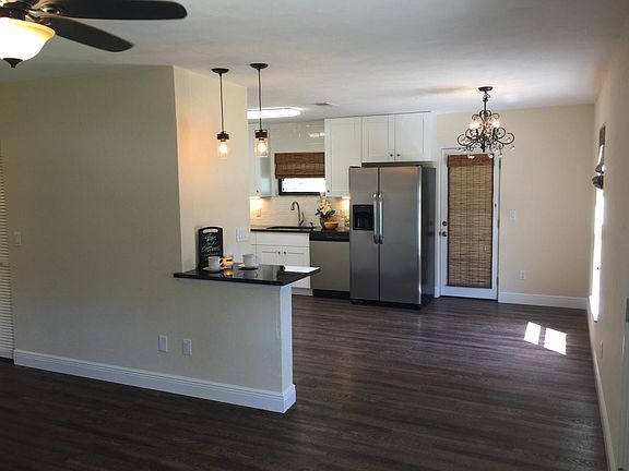 PET-FRIENDLY SINGLE-FAMILY HOME FOR RENT 704 New York Ave., South Daytona, FL Beautiful and Sparkling Clean, newly remodeled Key West style cottage. 3 bedroom/1 bath 1,080 square foot home convenient to schools, shopping, restaurants and beaches. Bright white all-wood kitchen cabinets with soft close doors and drawers, under-cabinet lighting, granite counter tops and stainless steel appliances. Kitchen has custom-built serving area between kitchen and living room with granite counter and oil-rubbed bronze pendant lights which compliment the Pottery Barn oil-rubbed bronze crystal chandelier in the dining area. Backsplash is crisp white subway tile. Stylish custom bamboo window treatments (privacy lined) in main living area, dining and kitchen. Wood-look maintenance free flooring throughout entire house is very pet friendly as is the fully-fenced back yard! Large bathroom has 48" vanity with beautiful marble counter top, brushed nickel fixtures and lots of storage. All closets have closet systems installed to maximize storage. Washer and dryer included. Enjoy the cozy front porch with bead board ceiling and lighted fan. Ceiling fans throughout the home. Covered carport with utility room for storage. Rent $1,990 per month. Dogs and Cats welcome upon approval with $375 non-refundable fee per pet. Income must be at least 3x monthly rent. First, last and security deposit of $750 to move in. Background and credit check required $30 per person 18 years and over. Non-smokers preferred. Call Patti for showing. Apply in person or online through Zillow. Please note Red Door Premier Homes does not lease homes via Craigslist or other classified advertising.