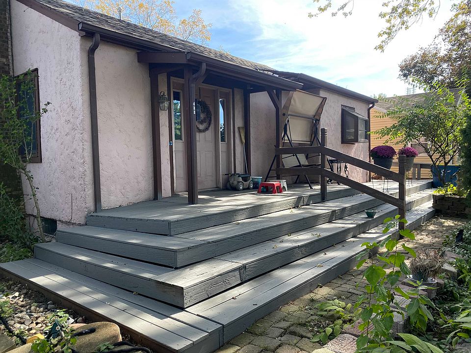 A quaint 2-bedroom home of 2700 finished sq ft including a full finished dry basement which was completed less than (6) months ago. Located on a quiet street with a nice view of Memorial Park. Large porch area on front of home, ramp access on side, and large open deck area at rear of home. Main floor bedroom freshly painted with en-suite bathroom with walk-n corner shower, twin skylights, and jetted garden style tub. ADA features in freshly painted 2nd bath area with walk-in tub/ shower. Main floor eat-in kitchen with garden window, 3-sided gas fireplace in dining room. Finished basement includes galley kitchen with gas range, large rec room, stone-faced wood burning fireplace, (3) large finished rooms, full bath, and laundry area with stacked washer & dryer. Two access points to basement- internal and private outside entry/exit. Space available to expand current 1-car garage to 2-car. Roof is (3) yrs old, furnace replaced within previous (10) yrs, water heater (6) months old. Updated 200-amp electrical service.