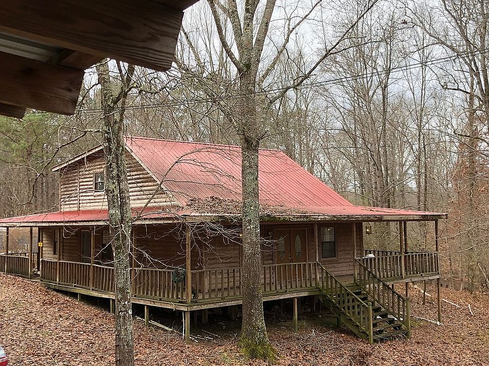 13 Acres +- A 3 bedroom, 2 bath cabin with livingroom, eat in kitchen, wrap around porch,central heat and air, laundry room, also a detached metal building for storage, also a 3 bedroom, 2 bath mobile home---selling AS IS condition---all for $125,000 Already gutted the inside, just needs to be remodeled. Can live in the trailer on site, or use it as monthly rental income.