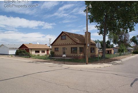 Updated brick home on large corner lot. Appliances included, some wood floors, hot water heat, wood fireplace. Zoned CR (commercial-residential), so either use fine. Cash or Conv only due to foundation work needed. Sold AS IS. 2 large detached garages 22x29 and 26x30. Great property for home/business combination. Nice small town living with easy commute to Denver, Boulder, Longmont, Loveland, & DIA.