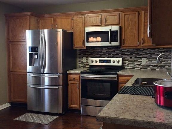 Split bedroom home is ready for you! 3 bedrooms,2 baths. Large great room with vaulted ceilings.Hardwoods floors throughout. Stainless steel appliances stay. This home has a fenced backyard with a 12x14 covered patio that has been freshly stained. New AC in 2016.