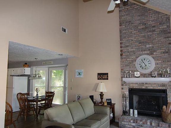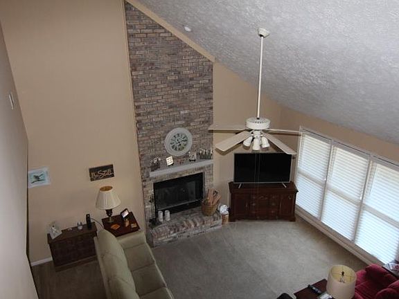 Kitchen, dining & family room are open. Kitchen has granite wall oven and cook top. .Family room cathedral ceiling & electric fireplace. Food pantry and laundry room on main level. Home features 3 bedrooms 2 full baths. Owner bedroom upstairs, double vanity, jetted tub large separate shower. 2 Walk in closets. Wood flooring in dining room, kitchen and hallway. 2 car carport. Screened porch at rear of home and a garden area. HOA $40 a month covers lawn service, community pool and fishing lake.
