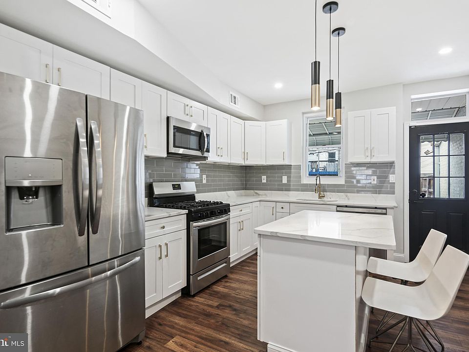 This 3-Level Canton Townhome with Covered Rear Porch and Private Courtyard Patio is a Must See! Enter into the home to the Open Concept Main Level with Living Room featuring Luxury Vinyl Plank Flooring throughout the Main level, and Exposed Brick. From the Living Room continue to the Dining Room then the Gourmet Kitchen featuring Granite counters, Gas cooking, Stainless Steel appliances, Recessed Lighting, Subway Tile Backsplash, Kitchen Island with Seating and Pendant lighting. Also on this level is access to the covered Porch with Composite Decking and Rear Courtyard Patio. The Upper Level of the home features the Primary Bedroom with Luxury Vinyl Plank Flooring and recessed lighting plus an Attached Primary Bath with Walk-In Shower, gorgeous Tile Surround, Frameless Glass shower doors and Tile Flooring. Continue to the second Bedroom with Luxury Vinyl Plank Flooring, plus the Hall Full Bath with Salt Throne Tile Surround Tub Shower Combination and Black Tile Flooring. The Hallway features a Skylight to let in the natural light and an Alcove for a Potential Desk or Sitting Area. The Lower-Level Features Bedroom 3 with Luxury Vinyl Plank Flooring, a Third Full Bath with Stall Shower, Subway Tile surround and Tiled shower floor. Plus, a Large Storage, Utility and Laundry Room! This Home is Walking Distance to Restaurants, Bars, Patterson Park, Canton Waterfront and all that Canton Living Has to Offer AND is Move-In Ready!