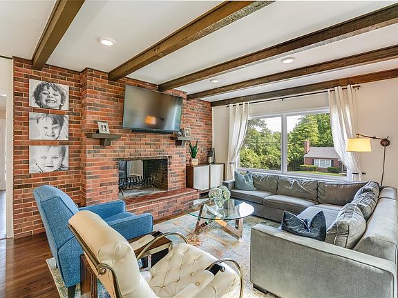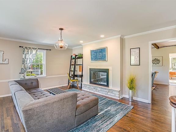 The curb appeal will get you first, but once you step through the front door, you'll be undeniably smitten with the functionality and timeless style of the living spaces inside. This gorgeous 3 bed, 2-full, 2-half bath home in the heart of Webster Groves boasts hardwood floors and stunning architectural details. The main floor double-sided fireplace has exposure in the living room and family room with exposed brick wall and beamed ceiling. The light, bright kitchen with custom cabinets, quartz counter tops, stainless appliances, and peninsula breakfast bar opens to the family room and the vaulted, bayed sitting room beyond. The main floor is rounded out by the dining room and a powder room. Up the pretty, white spindled staircase to 3 ample bedrooms, including the master with walk-in closet, vanity/dressing area, and luxury bath. The partially finished lower level offers rec area with decorative fireplace, office, laundry area, and powder room and walks outside or into the garage.