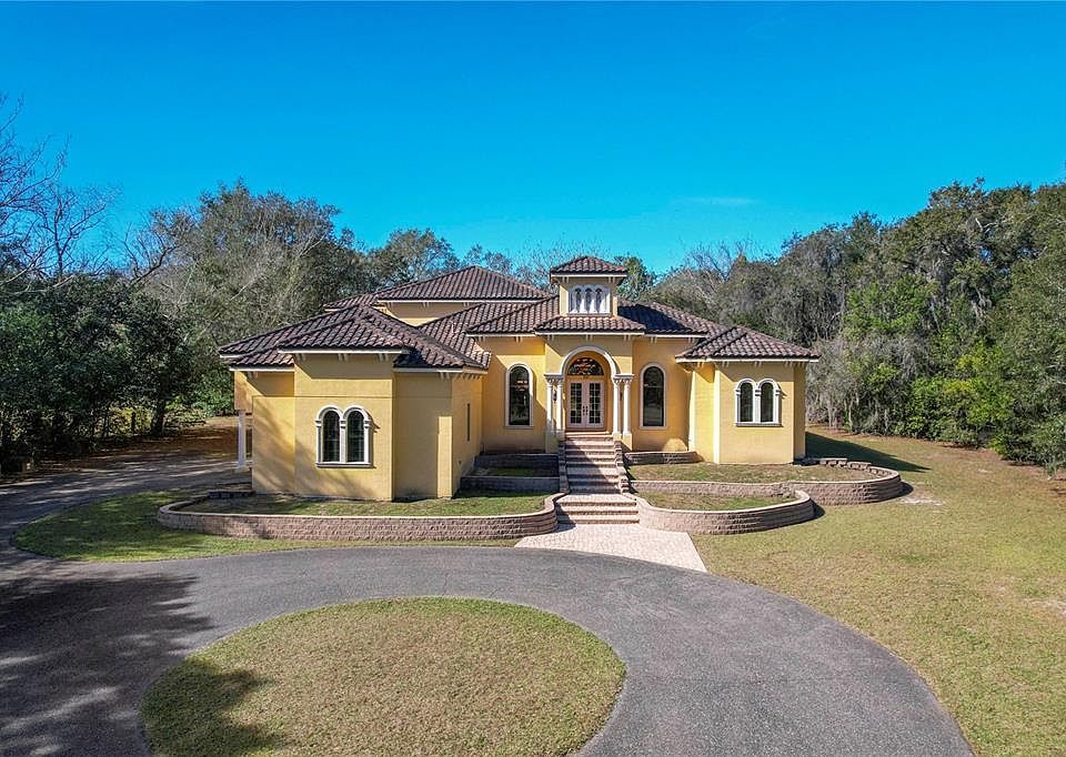 One or more photo(s) has been virtually staged. Welcome to your private country estate. Surrounded by scores of oak trees this custom home is set back from Mulrennan Road. The circular drive leads to a side entry garage. There is room to extend the drive to park an RV or boat. There are no deed restrictions. The home is decorated as you would expect in an executive style home, with too many features to list. There are four ensuite bedroom and baths. There are two guest powder rooms, one on each floor. The home is adorned with coffered ceilings in the foyer, living room, and dining room. Each room has stunning chandeliers. There is a front room that also has coffered ceilings that can be your home office or a 6th Bedroom. This office also has a magnificent chandelier. Off of the foyer is a hall leading to the owner's suite. The primary bedroom boasts of coffered ceilings with a ceiling fan. The bedroom has loads of windows and an entry to the rear patio. The owner's bath has two separate vanities each with their own sink. Between the bedroom and the bath are two walk in closets. The bath has an island dresser. The living spaces in this home are incredible. There is a formal living room and dining room, a huge family room open to the kitchen. Upstairs are two more living spaces, plus a study. There is also wet bar upstairs for movie night. The kitchen has an island with a small sink, a separate island between the kitchen and living room that functions as a buffet. There is a small butler's pantry between the kitchen and the formal dining room. For everyday meals, there is a small dinette or breakfast nook off of the family room. There are built-ins in the family room. There is also room for additions. The home is pre-wired for your audio visual and networking equipment. Electrical and plumbing connections appear to be in place for a pool. Connections are in-place for an outdoor kitchen. Space has been set aside for an elevator. There are multiple offers. Seller is requesting all buyers submit their highest and best offer by 6 pm Wednesday, 2/1/2023.