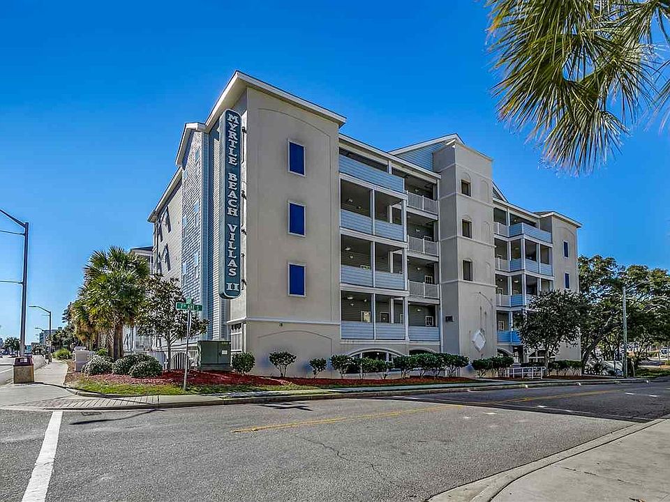Large and spacious four bedroom condo unit located in Myrtle Beach Villas. Prime location right on Ocean Boulevard in the heart of Myrtle Beach. Myrtle Beach Villas is a well maintained raised building with covered parking below. Elevator access for easy entry. This unit provides space for all of your guests or family! Open floor plan with dine in kitchen and living room. The large balcony spans the width of the unit and allows everyone to take advantage of outdoor living and enjoy the ocean breeze. This condo comes fully furnished with updated decor and all appliances. Four large bedrooms are arranged to sleep 10-11 guests comfortably. Three bathrooms offer easy access for all occupants. The kitchen features plenty of cabinet space and room to prepare meals for a large group. Granite countertops and black appliances lend an upgraded feel to the unit. For easy maintenance the living spaces are finishes in solid surface laminate flooring. This property is a fantastic investment opportunity with a solid rental history in place. The owner has taken great care of the property and it's been excellently maintained. Myrtle Beach Villas has plenty of amenities that appeal to guests. An outdoor pool, lazy river, kiddie pool, grilling area, an elevator in the building, and more. The location also allows for easy access to the Grand Strand's many restaurants and shopping, even better it's just steps to the oceanfront!