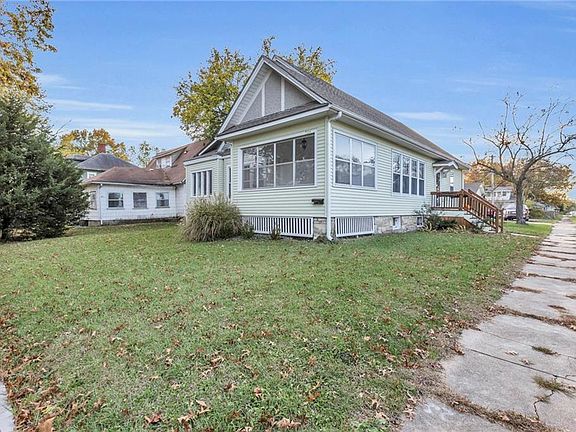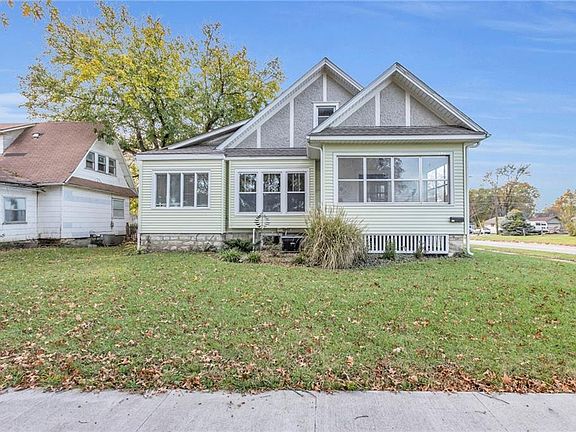 Charm, Charm, Charm! This spacious corner lot 3-bedroom, 2-bathroom home features decorative wood trim, built-in bookshelves plus original hardwood floors in the living area, dining room, hallway, and main floor bedrooms. The large galley kitchen includes lots of cabinet space, newer appliances, and built-in shelving. Upstairs you will find a roomy primary suite with its own private living area and bathroom. The home also features a cheery sunroom that is the perfect spot for houseplants to thrive and to enjoy your morning coffee seated on the porch swing, as well as a convenient main-floor laundry room. The back yard is ideal for relaxing or hosting and includes a privacy fence, brick patio and sidewalk. A one-car detached garage has an adjacent carport and lean-to, and the expansive gravel lot next to the garage supplies additional parking. This attractive property includes newer hvac, kitchen appliances, exterior paint, hot water heater and roof.