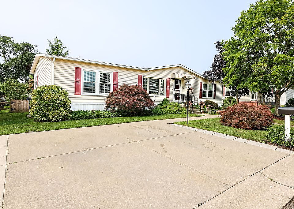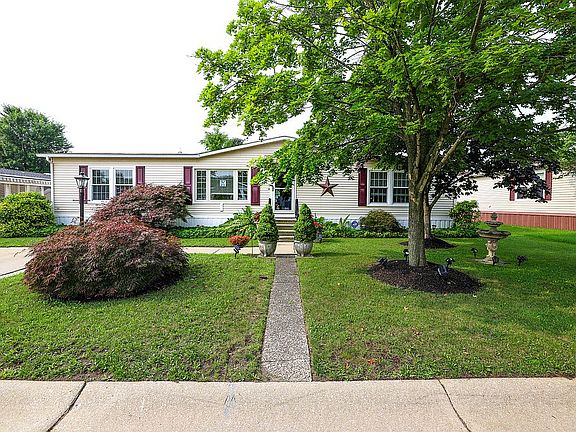 WE DO NOT COOP WITH REALTORS OR INVESTORS. THIS HOME IS LISTED BY THE COMMUNITY OFFICE. Homeowners do not pay Real Estate Taxes One of the Largest homes found in Tricia Meadows. Beautifully landscaped 2 bedroom 2 bath with a den, sunroom and beautiful fenced in back yard will not last. Roof, Attic Fans, Skylight: Approx. 10 years Some windows are newer Sunroom Roof: Approx. 1 year old Heater/AC: Sept 2018 How Water Heater: April 2017 Oven/Range: GE Gas Range 2014 w/ SS Range Hood Refrigerator with ice maker and water filter: Dishwasher: Sept 2022 Garbage Disposal: Yes (Kitchen center island not included in sale) Ceiling fan 1 Master Bedroom 10x14 Florida Room Shed with vinyl siding 10 years Trex Decking and steps 4 years Skirting replaced 5 years ago Doors replaced 2013-Back door w/doggie door Storm Door approximately 2-3 years Post and Rail fencing w/metal mesh interior 2014 *All Buyer must be approved by Davis Enterprises