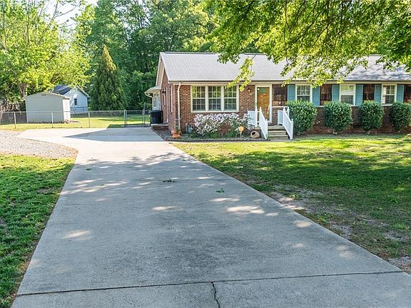 CHARMING 1845 sq ft on .46 acres in the HEART of Burlington. Lush lawn, stately hardwoods, muscadine vines, fig tree and beautiful Japanese maple. Low maintenance brick and vinyl exterior. Spacious family with sunny triple windows. Dining room overlooks kitchen with stainless sink and stainless appliances. BRIGHT sunroom on rear of home. Master Suite on front right of home with in-suite bath and walk-in closet. 2 additional bedrooms on right and full bath. Bedroom on rear left of home and generous laundry room. Fenced back yard with rear and side patio. Storage building with ramp and power. Established neighborhood close to interstate and shopping. This could be your NEW home!