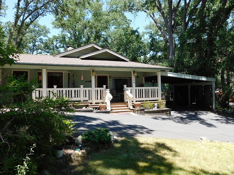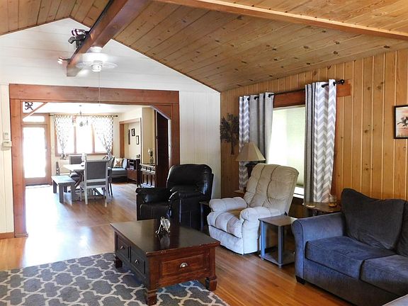 Country style home with wrap around driveway, situated on an acre lot smack dab in the middle of town. Many upgrades with lots character and charm of its time. The 3 bedroom 2.5 bath home is spacious 2301 SF. Beautiful hardwood floors, crown molding, knotting pine vaulted ceilings, wood stove insert, plus central heating system, wrap around deck to nicely fenced yards. 1000 Sqft. Oversized shop with roll up doors, room for animals. Above Ground Pool with newer liner. Just minutes from downtown