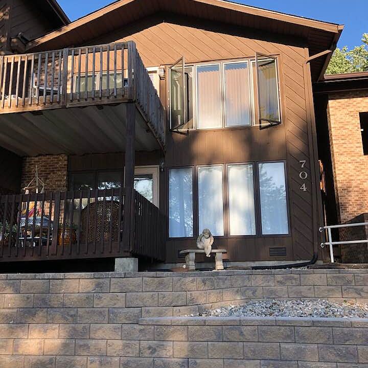 Nice 2 bedroom condo overlooking the lake with front & rear views of lake, privacy fence at rear patio. Master with walk in closet, laundry conveniently located in condo. Updating inside with some new flooring, freshly painted inside, furnace in 2018, some lighting '21. New stainless refrigerator and range. Monthly fees $180 & include lawn care and snow removal. Has 1 full bath and one half bath. 2 parking spots, one is on far left carport and other is far left spot facing condo.