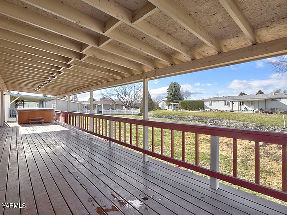 This well maintained 1,775 square foot home is part of Sun Country, a wonderful 55+ gated community in Terrace Heights. The inside will surprise you with how spacious it feels! Offering 3 bedrooms and 2 bathrooms, including a master suite, plus an open concept kitchen and 2 living spaces, this home features a very functional layout. Outside you'll find plenty of parking in addition to the 2 car garage with a bonus work bench area for your projects. Don't miss out on seeing the private back deck with master suite access to the bubbling hot tub and peaceful private setting! Updates include a newer heat pump, refrigerator, dishwasher, and a 10 +/- year old roof.