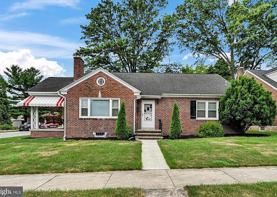 Brick home estimated @ 2,000+sqft., offering 4 bedrooms 2 full baths (estimated 864 sqft, 1 bedroom & full bath on finished upper level) eat-in style kitchen, plenty of cabinet space, a large brick fireplace in the living room and upgraded windows throughout. Laundry on first floor & full basement also contains the laundry, open space for rec room with outside stairs. Corner Lot with a covered side porch perfect for your morning coffee, and a detached 2 car detached garage on this level corner lot. Close to Denver Park & walking distance to Main Street & Schools.