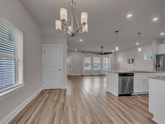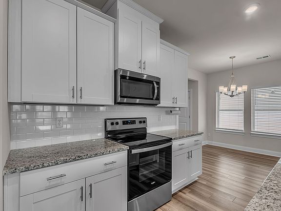 Spacious islandCozy front porchStainless steel appliancesGrey oak evp flooringCapri grey granite countertops