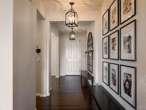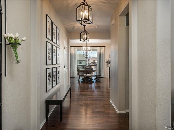 Beautiful home on cul-de-sac with mountain VIEWS. This 4 bedroom house has hardwood floors, custom lighting, and custom window treatments throughout. The main floor includes a room that can be used as an office or dining, bright eat in kitchen with VIEWS, and a large family room. Upstairs is the primary suite with mountain VIEWS, primary bathroom with walk in closet, 2 additional bedrooms, a bathroom with dual sinks, and the laundry room. In the walk out basement you will find a bonus room with amazing built in bunk beds, a bathroom, and a private bedroom. The large backyard is perfect for Colorado sunsets with the fire pit and amazing VIEWS. Visit Backcountry's award winning Sundial house with resort style pools, fitness center, spa treatment rooms, bar area offers happy hour with live music and activities for all ages. Hundreds of acres of open space to hike and bike! Playgrounds and ponds to enjoy year round. This gated community has it all! Bus stop at the top of the street to the local elementary school.