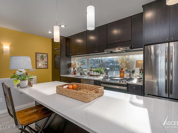 Airbnb allowed & possible 2.875% assumable loan W/this stunning & modern home is the best that downtown living has to offer. Minutes away from the greatest restaurants & entertainment in Anchorage like 49th state Brewery & Coastal Trail. Unobstructed inlet views from your bedroom & sunsets from your private deck. Heated garage, maintenance free living, great for snowbirds! Easy to show, call Today