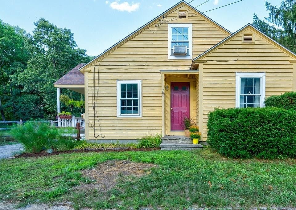 This lovely Cape has charm, updates and a picturesque property to enjoy from the adorable side porch. The kitchen is newly updated with cabinets, flooring, windows and paint. New windows carry throughout the house, an updated bathroom with engineered flooring and a dining area with plenty of eat- in space. There is work- from- home space off of the living area with hardwood floors. Upstairs this cape has two bedrooms with hardwood floors and a built- in loft bed to maximize space. The basement is dry and ready for someone to refinish if they are seeking additional space. The location is convenient to conservation land, a watering hole with rope swing and Squannacook River Rail Trail. Showings start immediately. Open Houses Saturday 8/8 11:00 - 1:00 and Sunday 8/9 1:00-3:00. Offers due at Noon on Tuesday, August 11.