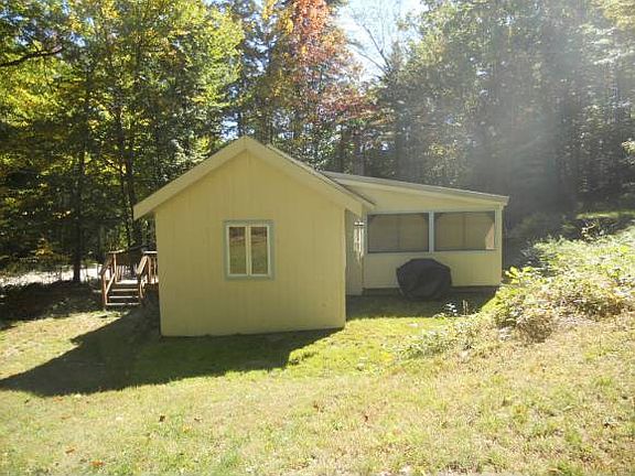 Great Getaway!! Nicely maintained with deck and large Screened porch in back with plexiglass panels as well as screens. GloWarm propane heat, outside shower as well as 3/4 bath, two storage sheds, babbling brook runs thru property. Roof is two years old. Comes furnished. Come and relax on the deck and listen to the sounds of nature and the brook!!!
