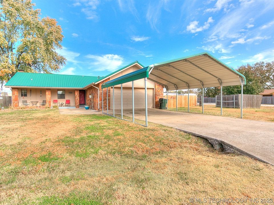 This Charming House is located in DT Skiatook & is perfect for those who want to enjoy the peace & quiet of small-town living while still being close to the city. This home has 3 bedrooms & 2 bathrooms. It features an open floor plan with a spacious living room, dining area & kitchen. The kitchen comes equipped with modern appliances & plenty of cabinet space. Large backyard perfect for outdoor activities or entertaining guests. Tree covered back porch and fenced yard providing shade, privacy & security. Just a short walk from Downtown Skiatook and yet convenient to HWY 75 making it easy to commute to work or enjoy all the amenities that Tulsa has to offer.