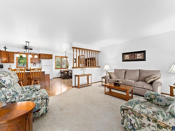 Looking for small town living while still being close to the city? You’ve found it here. Check out this spacious twinhome with tons of finished space and more unfinished space to expand or use as storage. The main level features a large, bright living room off the covered front porch entry. The kitchen has tons of cabinets and a large breakfast bar. Primary suite features a large bathroom and walk in closet. Second bedroom and full bathroom also on the main floor. Huge laundry room with storage off the attached one stall garage. The basement features a large family room, one additional bedroom and attached bathroom. There are two huge rooms that are unfinished. You could add equity by finishing them or use them for great storage areas. Large lot and a back patio space give you room to relax and enjoy the privacy this home provides.