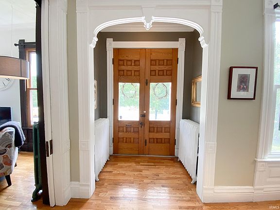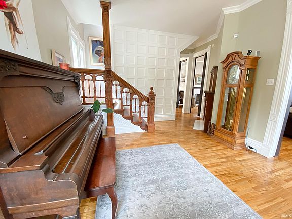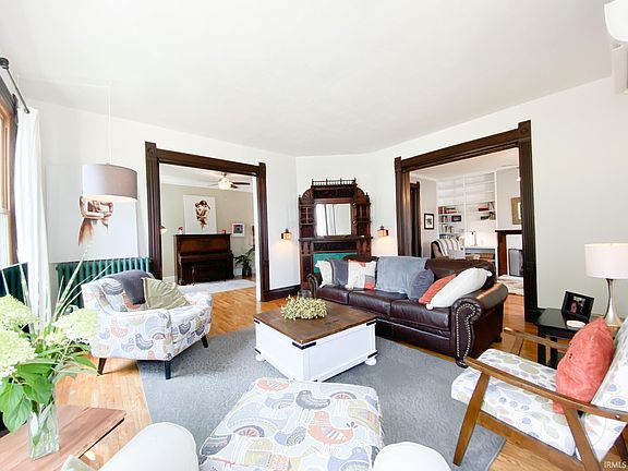 Immaculate Victorian home is ready for new owners after 30+ years with the sellers. The beautiful natural light gives the opportunity to paint the perfect canvas to build a life and dreams within these walls. This spacious home pulls you in from the curb with a covered porch, original carved double wood door set and showy foyer with open stairs, parlor living room with pocket doors, casual family room with gas fireplace door to patio, formal dining room with built in corner cabinets and buffet. The kitchen still has all the charm but offers modern quartz counters, undermount sink,double ovens, island with seating and a slding door to the deck. A main level laundry and powder room are tucked in for ease. The upstairs has 5 bedrooms, 2 updated full baths, & full walk up attic for storage.. The basement is tidy, and usable for a workshop or more with a shower for clean up. Plentiful space in the 2 car garage, and you can keep furry friends secure in this totally fenced, lovely landscaped yard, all within walking distance to the Riverwalk, Matter Park, restaurants and shops downtown. This home also boasts 6 gorgeous fireplace mantles, 5 of which are decorative, all original wood work, wooden stairscase railing.