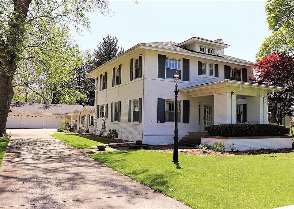 This is an unbelievable treasure from the sprawling 1.34 acre park like setting to the updated kitchen & baths, this home won't last long!! The charm of the butler's pantry, original hardwood floors, built-ins in the formal dining room, granite counters in kitchen, beautiful & bright sun room & expansive covered front porch to relax in the evening. The upstairs boasts 4 bedrooms plus another sun porch! The basement has new windows, new half bath & laundry area! You will never run out of storage with this home, it has a 3 car garage with an extra 4th stall plus a utility shed, all have new roofs! 200 amp electrical service and some newer plumbing. The property has superbly manicured landscaping and fruit trees with a stream running through!