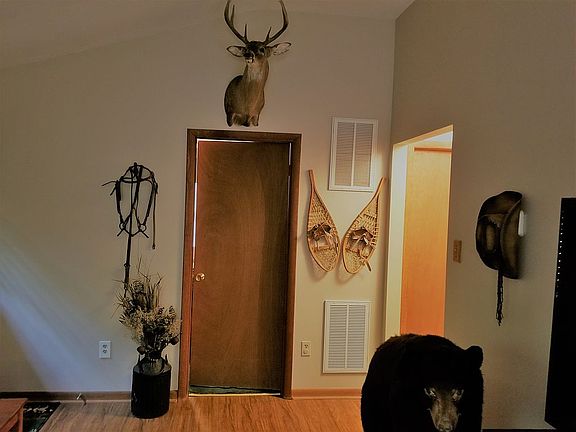 2 bed room Log cabin. Living room, kitchen, bath. Wrap around deck. Carport. Cellar. Wood shed.