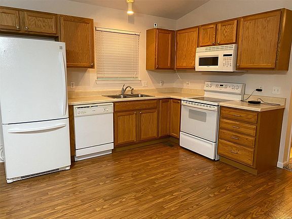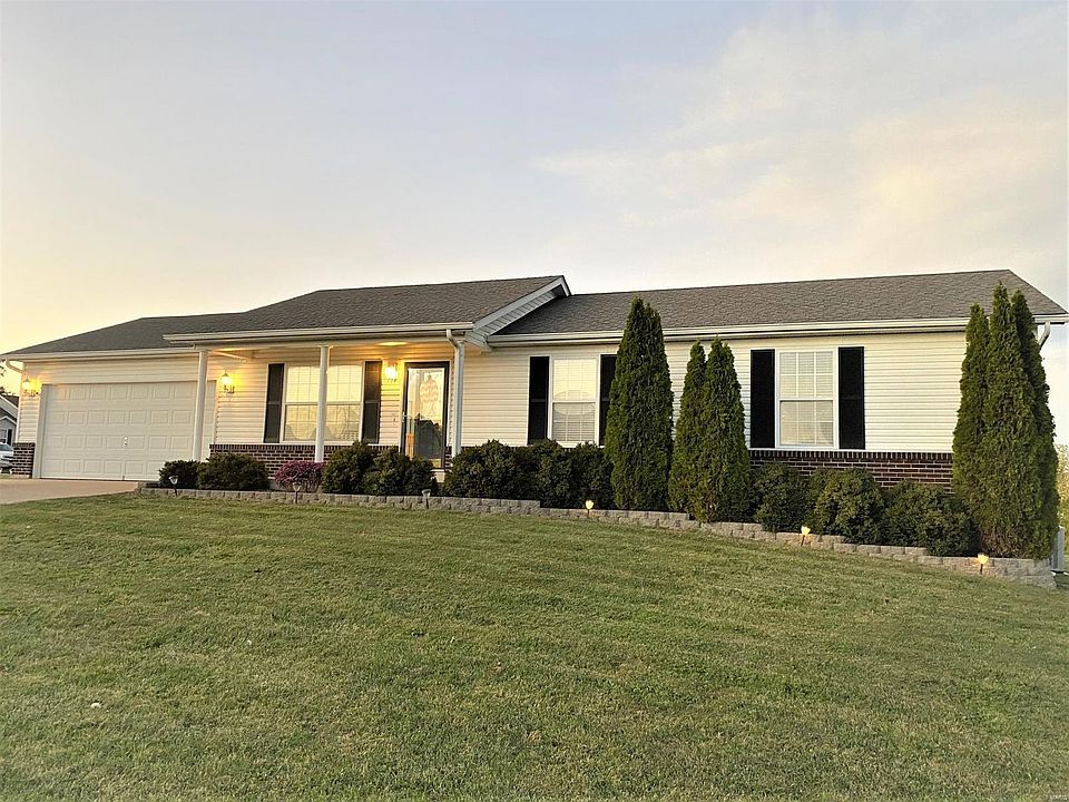 Move in ready home on beautifully manicure corner lot. Convenient location close to Schools and Hwys and Shopping. This ranch home has been freshly painted, and new carpet. Kitchen appliances included. Kitchen has a pantry. Eat-In Kitchen. Open floor plan with vaulted ceiling in Great room, open staircase to lower level. Lower Level Unfinished with roughin bath and sump pump. Large garage with work bench and man door to back yard. 3 bedrooms at one end of home and 2 baths. Patio off Dining area. Shed to store lawn equipment.