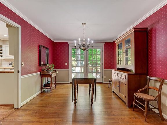 Beautiful, classic two-story residence in desirable Hamilton Forest! Slate floor entry leads you into the home. Beautiful hardwood flooring throughout. The kitchen features pretty butcher block countertops, a Viking gas range, two ovens, and a tile backsplash. Custom multi-level decking and several doorways with elevated trim on the main level were designed by Frank Smith. Double French doors from the breakfast and dining rooms lead to the deck for perfect al fresco dining and outdoor living! The family room features built-ins and a wood-burning fireplace. The primary bedroom has built-ins and a window seat. Also features a renovated bathroom with a custom vanity and granite counters. Three additional bedrooms and an updated full bathroom complete the second floor! 2-car detached carport. Established landscaping. Upscale copper gutters! Close proximity to parks, gardens, Friendly Center & restaurants. Conveniently located minutes from downtown Greensboro. Sought after school district!!