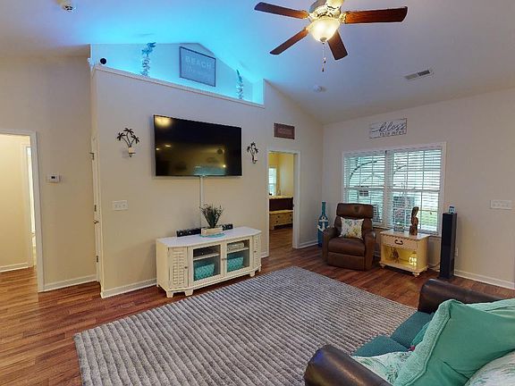 Introducing this vibrant and spacious 3 bedroom 2 bath home located on a .38 acre lot in the inviting Tanglewood community. This captivating home comes with wood looking LVT flooring, smooth flat vaulted ceilings, a delightful plant shelf, formal dining area, ceiling fans, and showcases living room access to the covered relaxing back patio. The kitchen offers a breakfast bar, stainless steel appliances, smooth flat top range, built-in microwave, dishwasher, cabinets with crown moulding, ample counter space, recessed lighting, and easy access from the garage. The master bedroom features tray ceiling with fan, walk-in closet, and private access to the master bath that host a vanity with a single sink, comfort station, and a step-in shower. This stylish home is completed with two additional bedrooms, full guest bath, laundry room, fenced back yard, a charming front porch, and a two car attached garage. This home affords you easy access to the beach and golfing along with all of the other activities and happenings in Myrtle Beach & Conway including fun eateries, award winning off-Broadway shows, public fishing piers, Conways historic riverwalk, and intriguing shopping adventures along the Grand Strand. Conveniently located to your everyday needs, including grocery stores, banks, post offices, medical centers, doctors offices, and pharmacies. Check out our state of the art 3-D Virtual Tour.